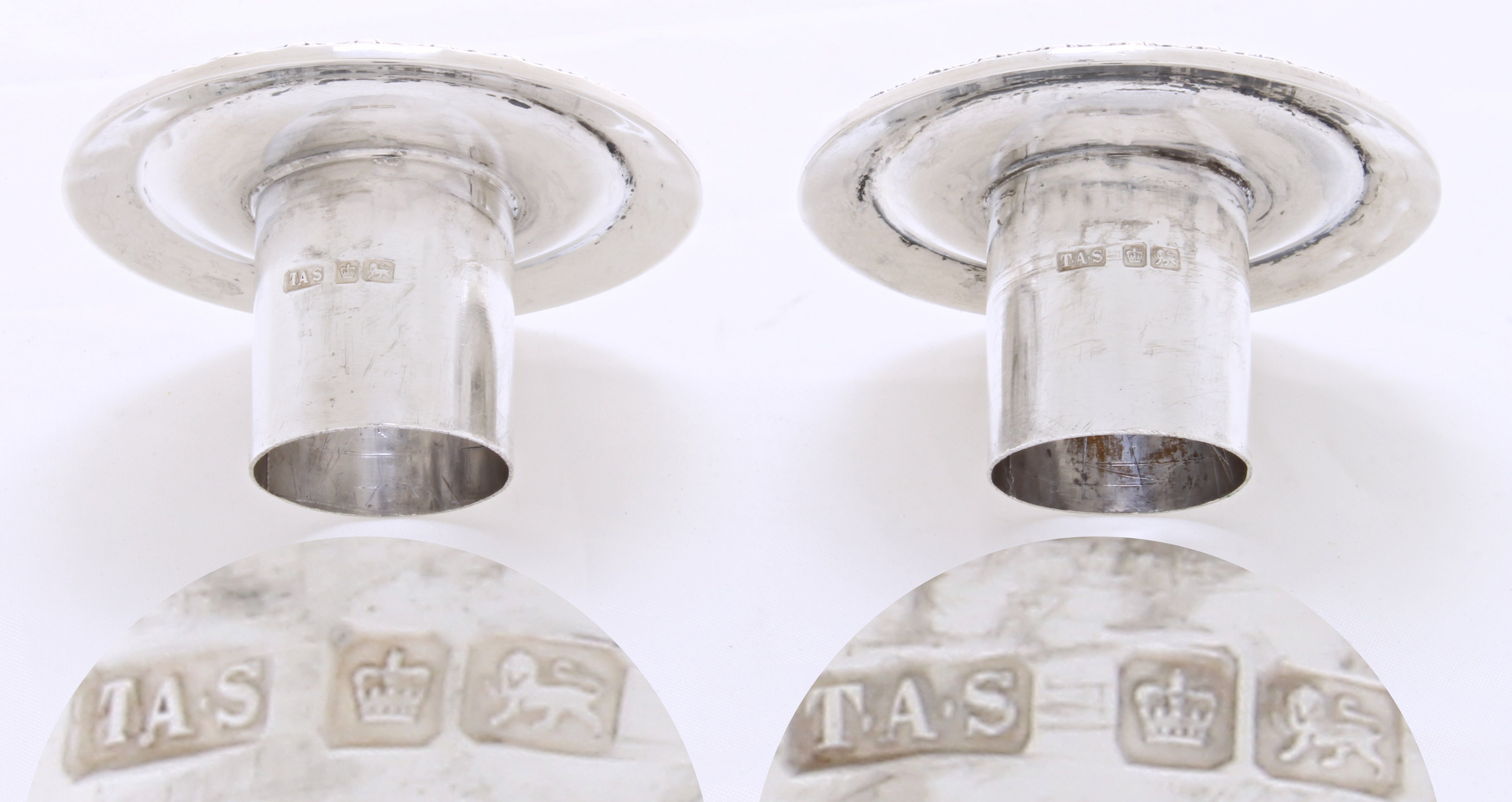 De afmetingen van dit paar handgemaakte zilveren kandelaars zijn: