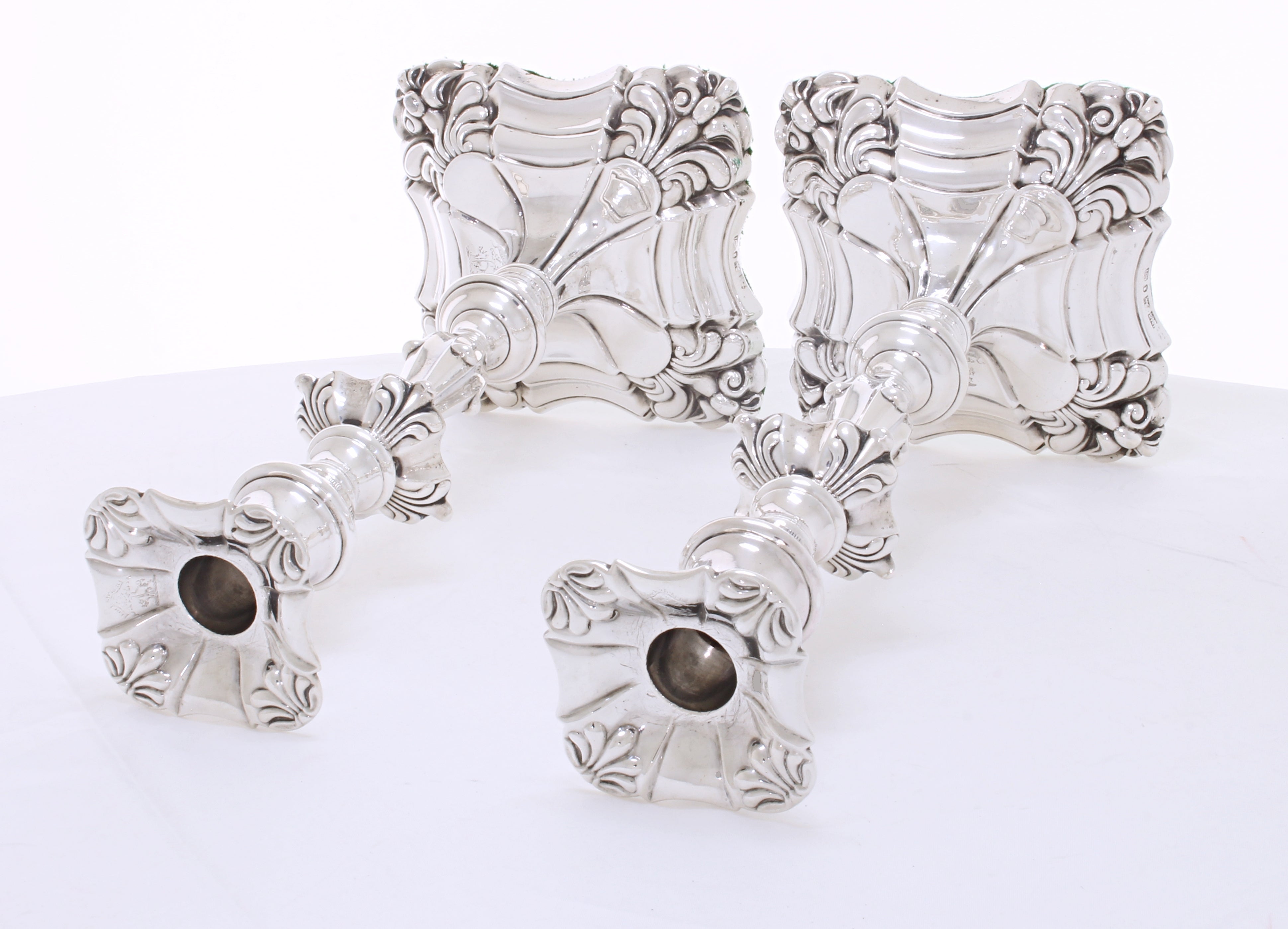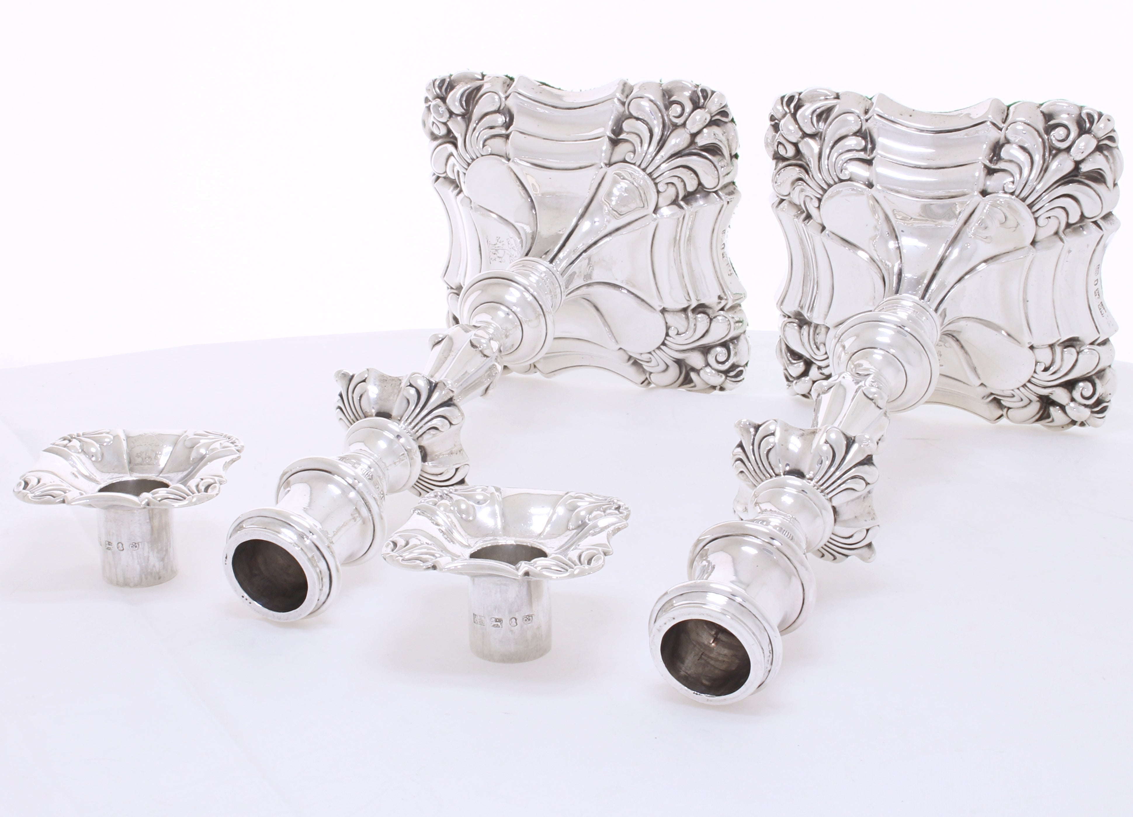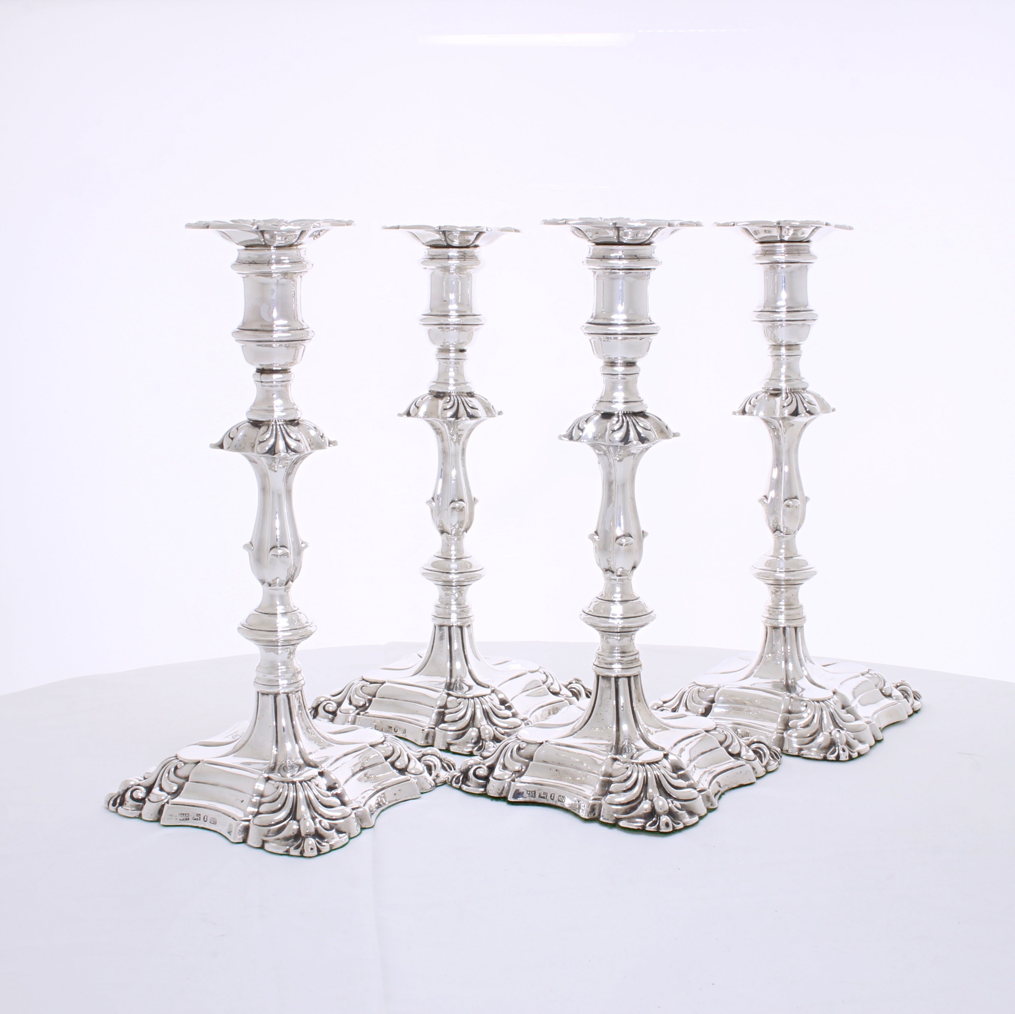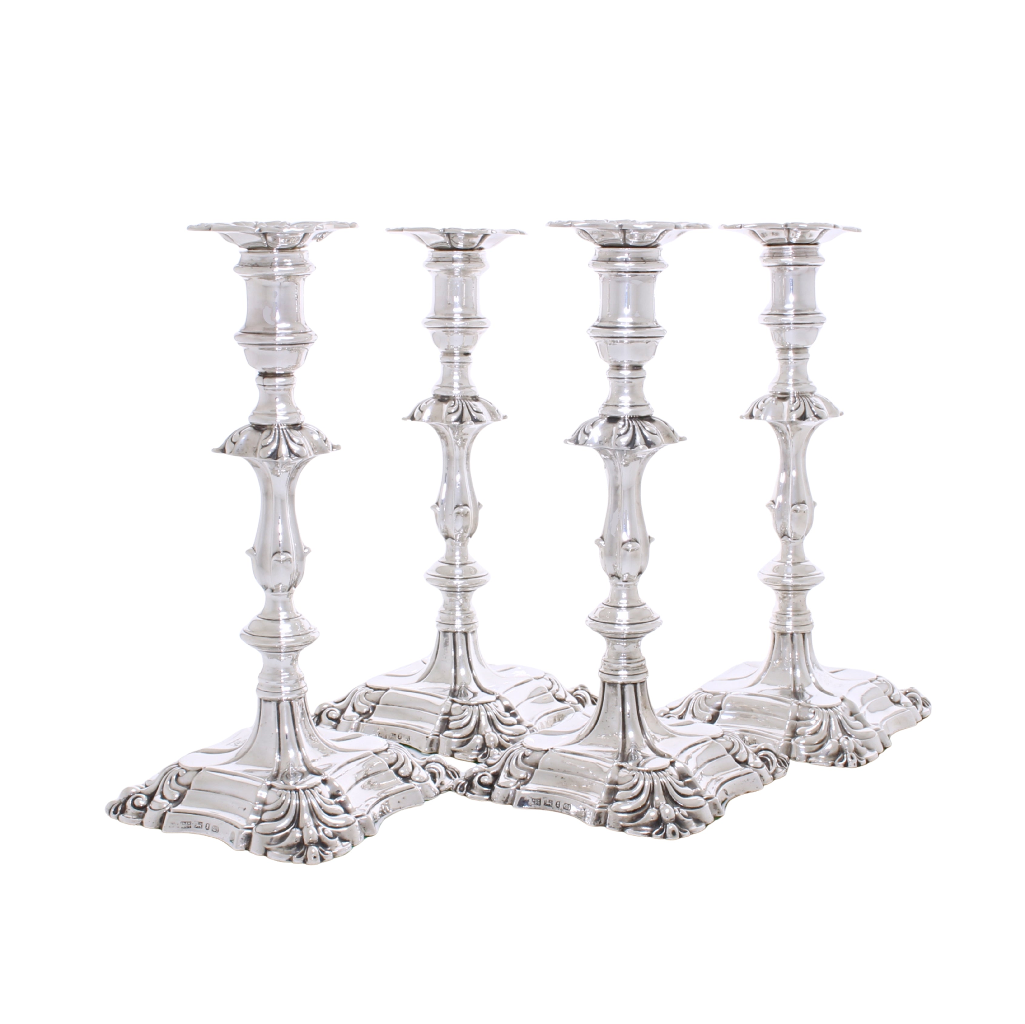 Een set van vier sterling zilveren tafel kandelaars uit de William IV-periode.
