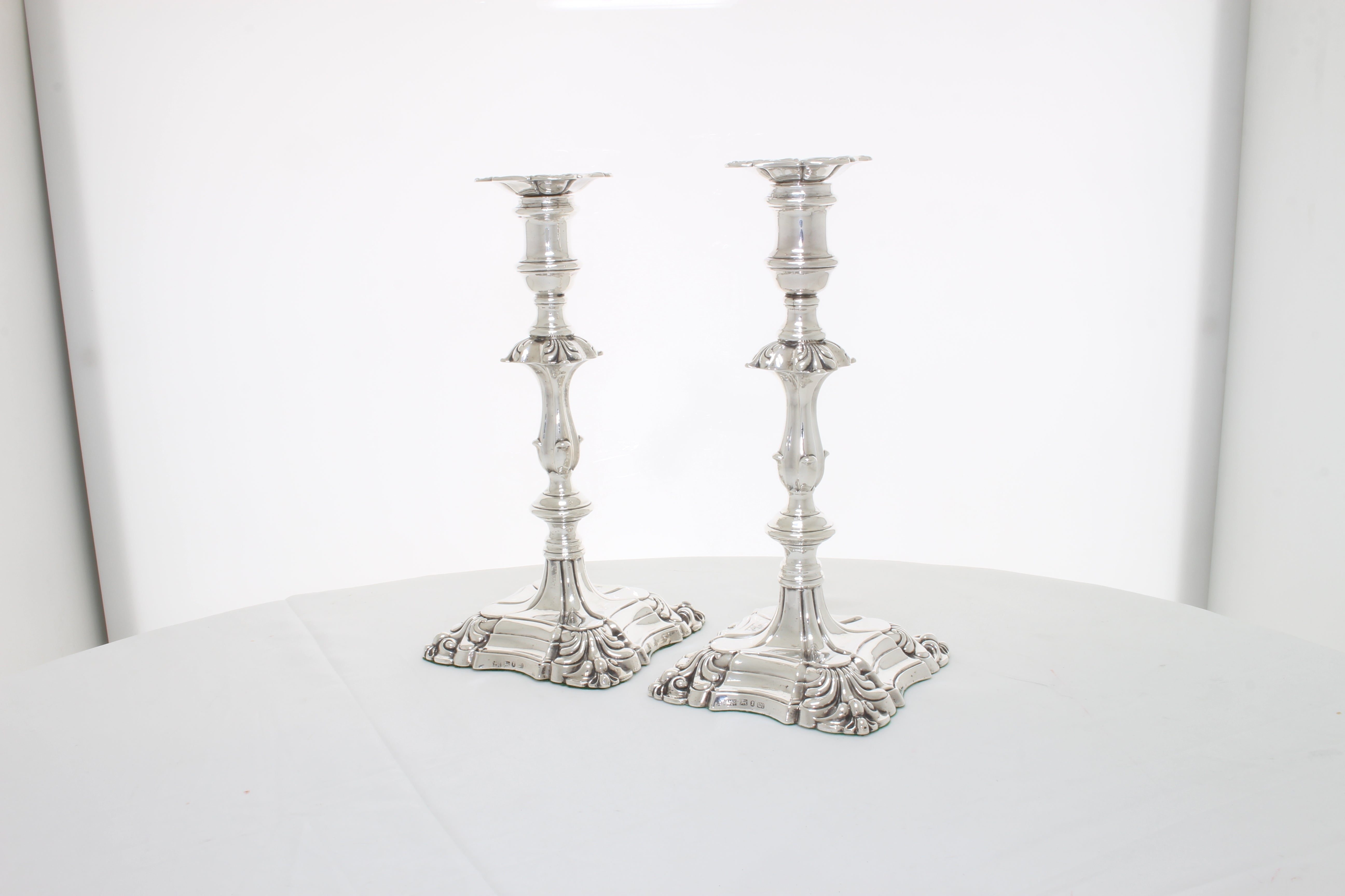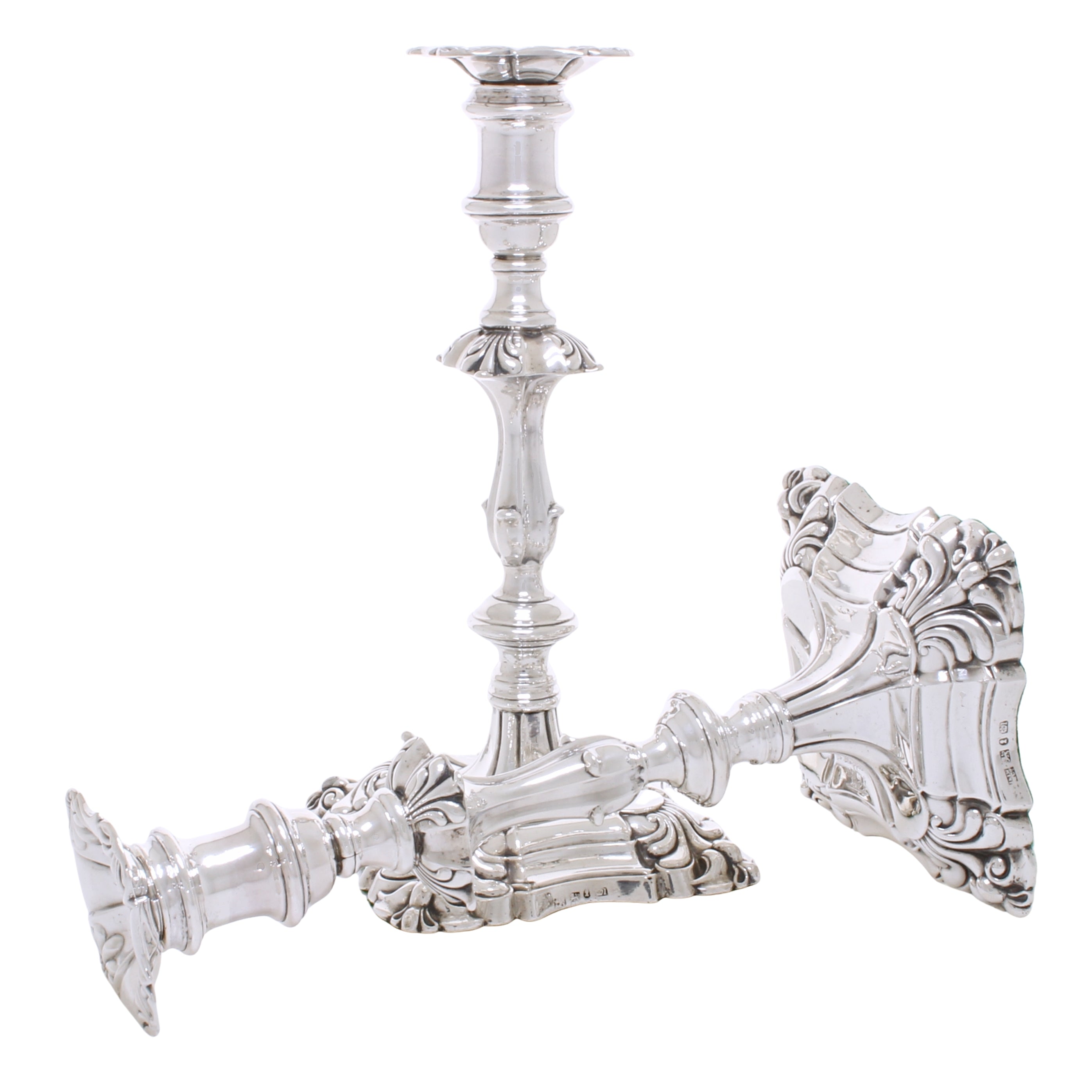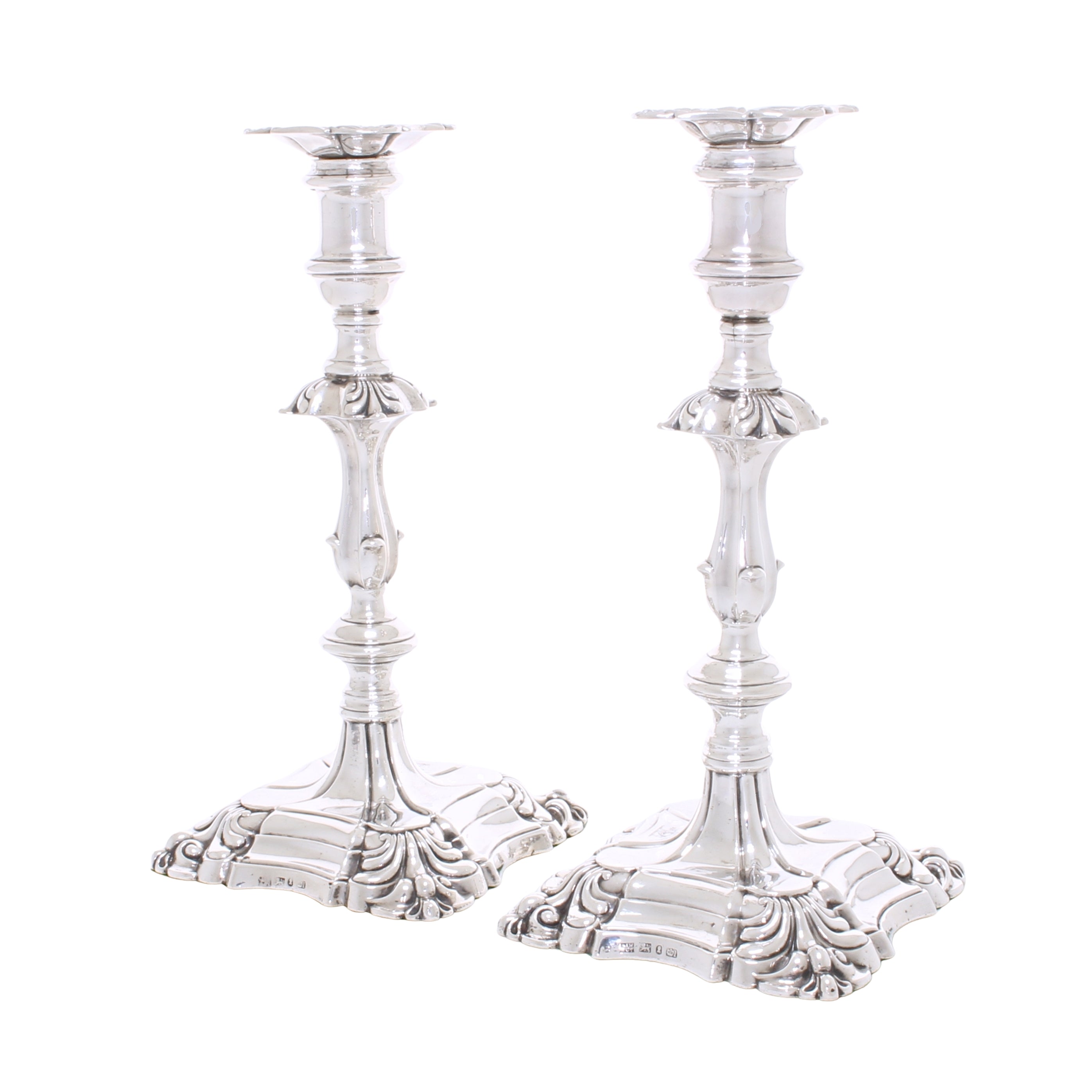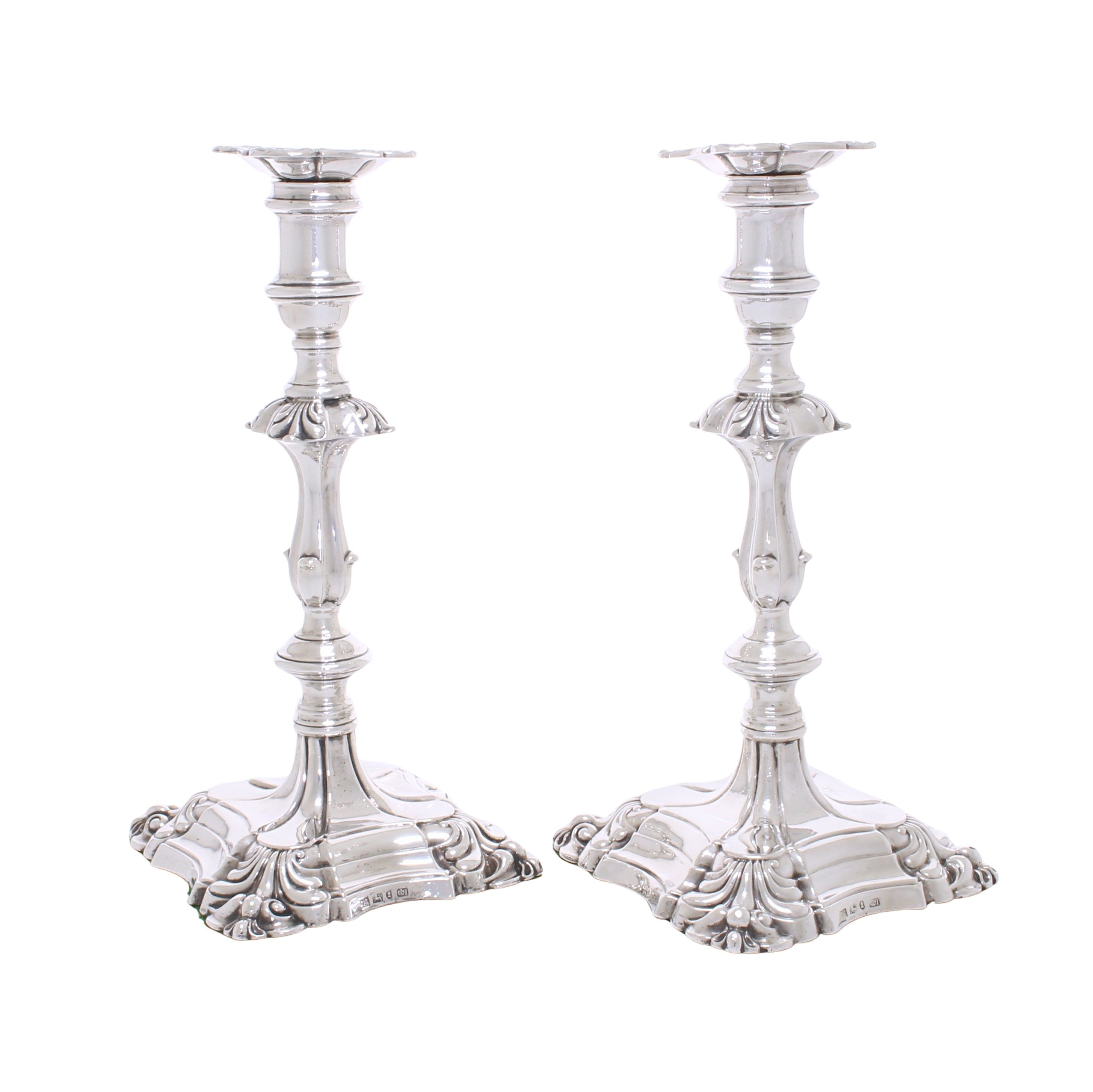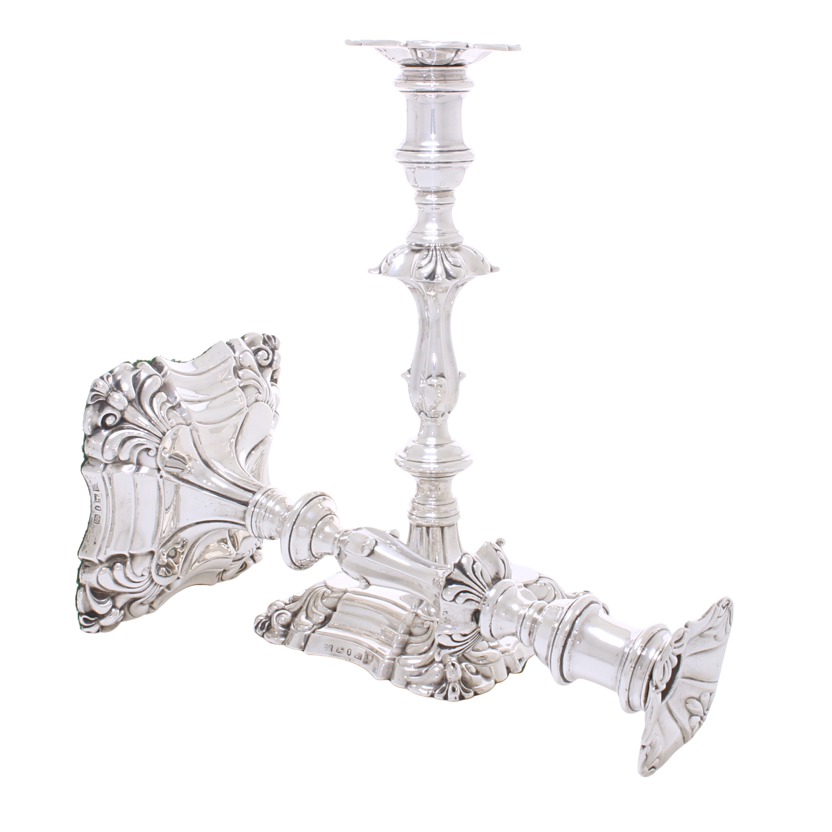 Een set van vier sterling zilveren tafel kandelaars uit de William IV-periode.