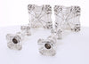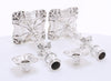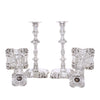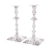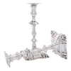De afmetingen van deze fraaie set handgemaakte antieke zilveren kandelaars zijn: