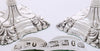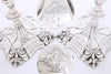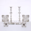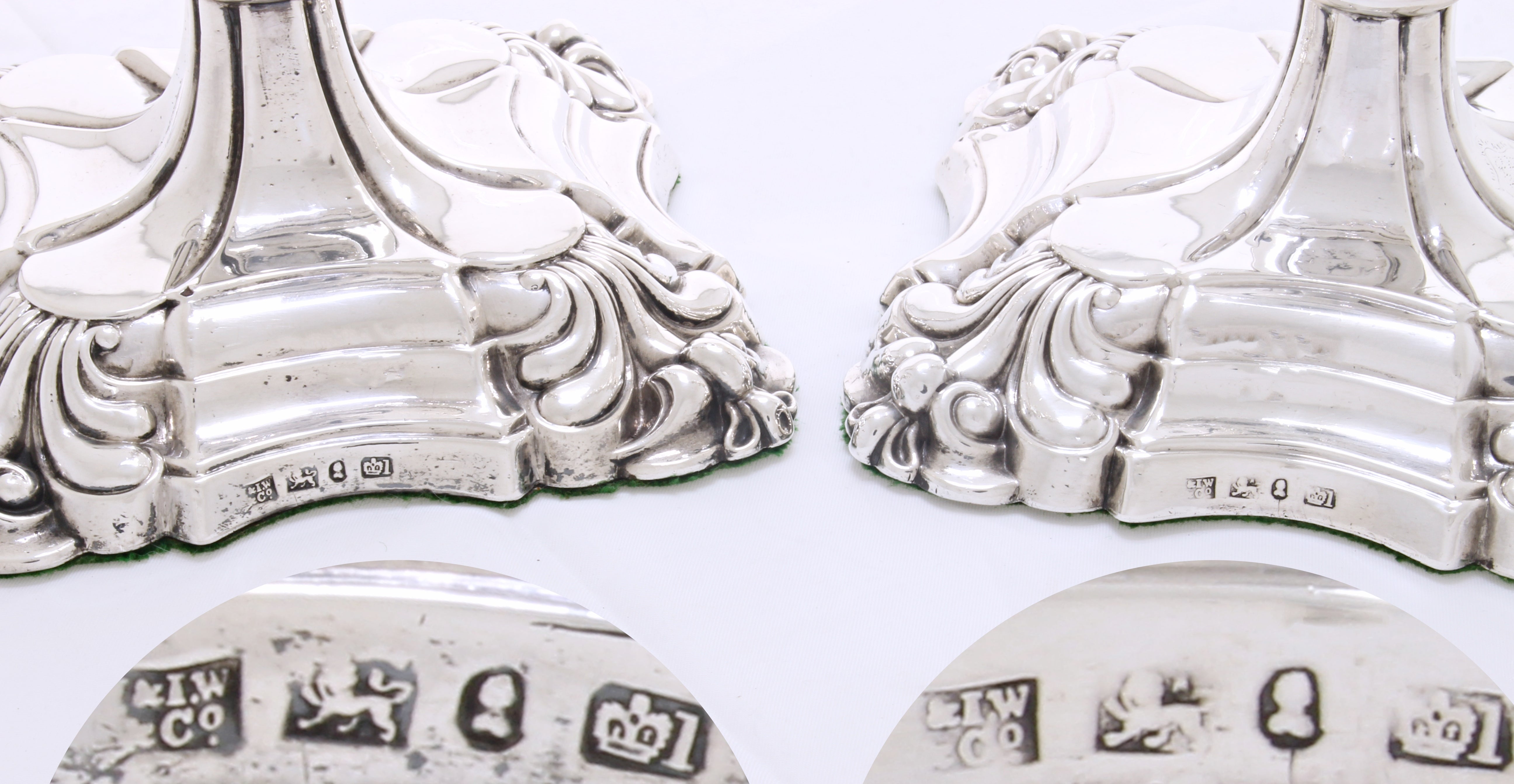 Ca. 1319 + 1183 + 1191 + 1204 = 4897 gram (Verzwaard voor stabiliteit met materiaal anders dan zilver) (bobèches wegen 321 gram samen).