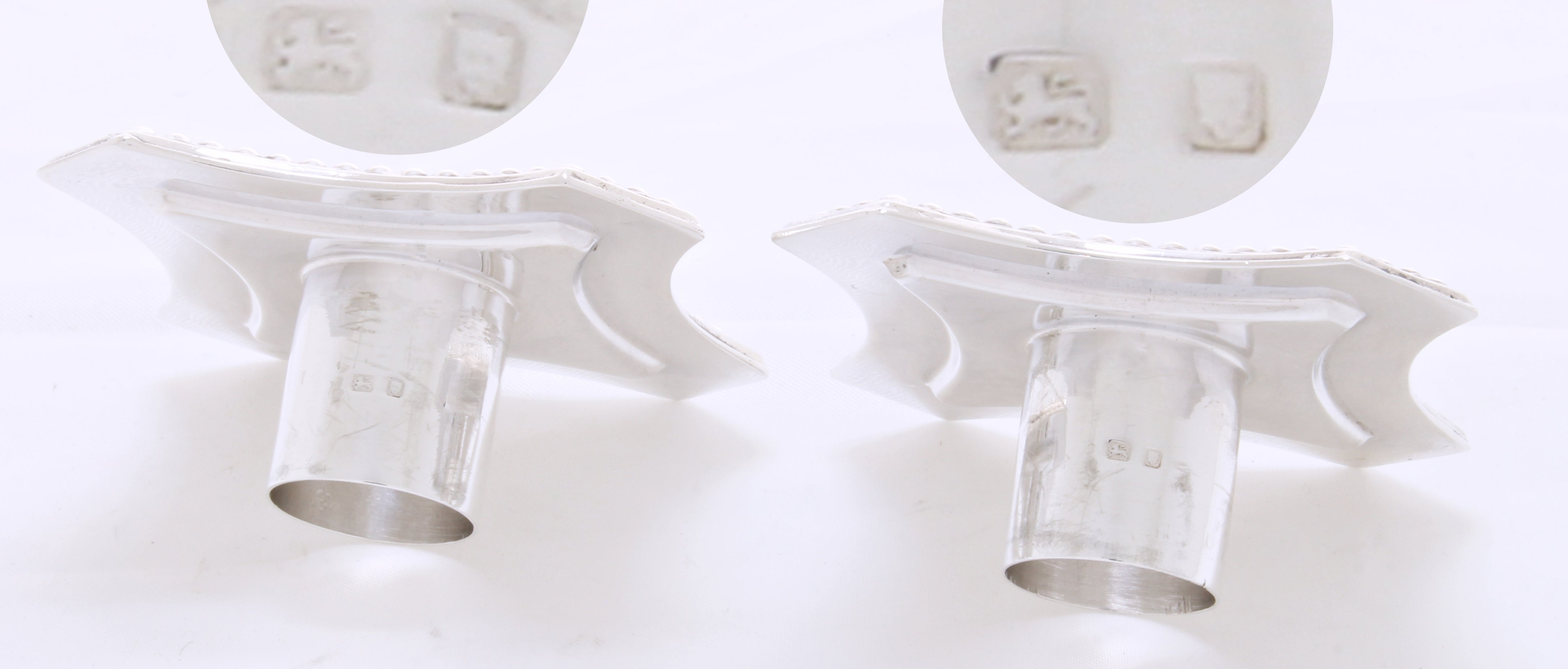 De afmetingen van dit mooie paar met de hand gemaakte zilveren kandelaren zijn: