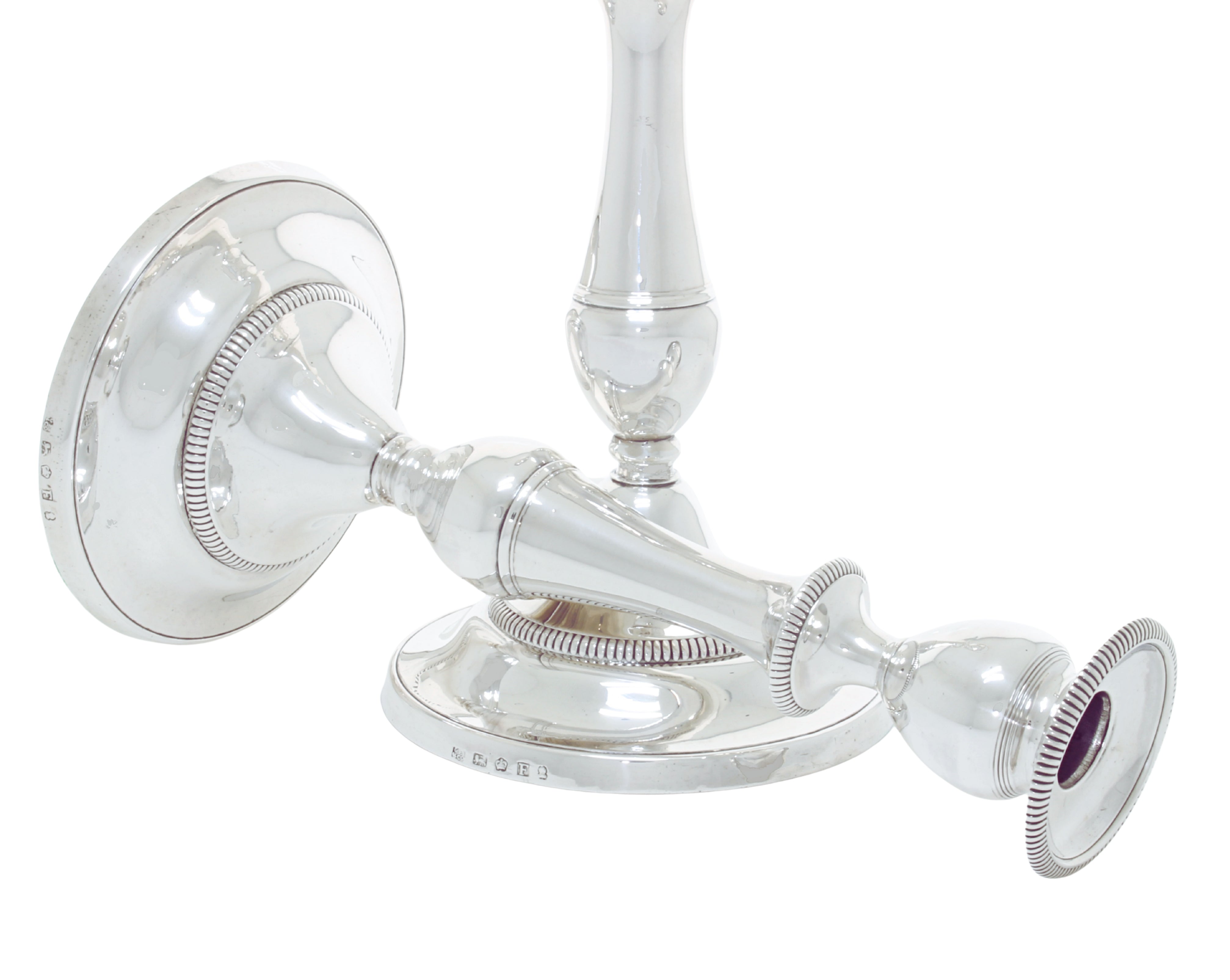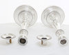 Ca. 874 + 973 = 1445 gram gram (verzwaard voor stabiliteit met materiaal anders dan zilver) (Bobeches wegen samen 86 gram).