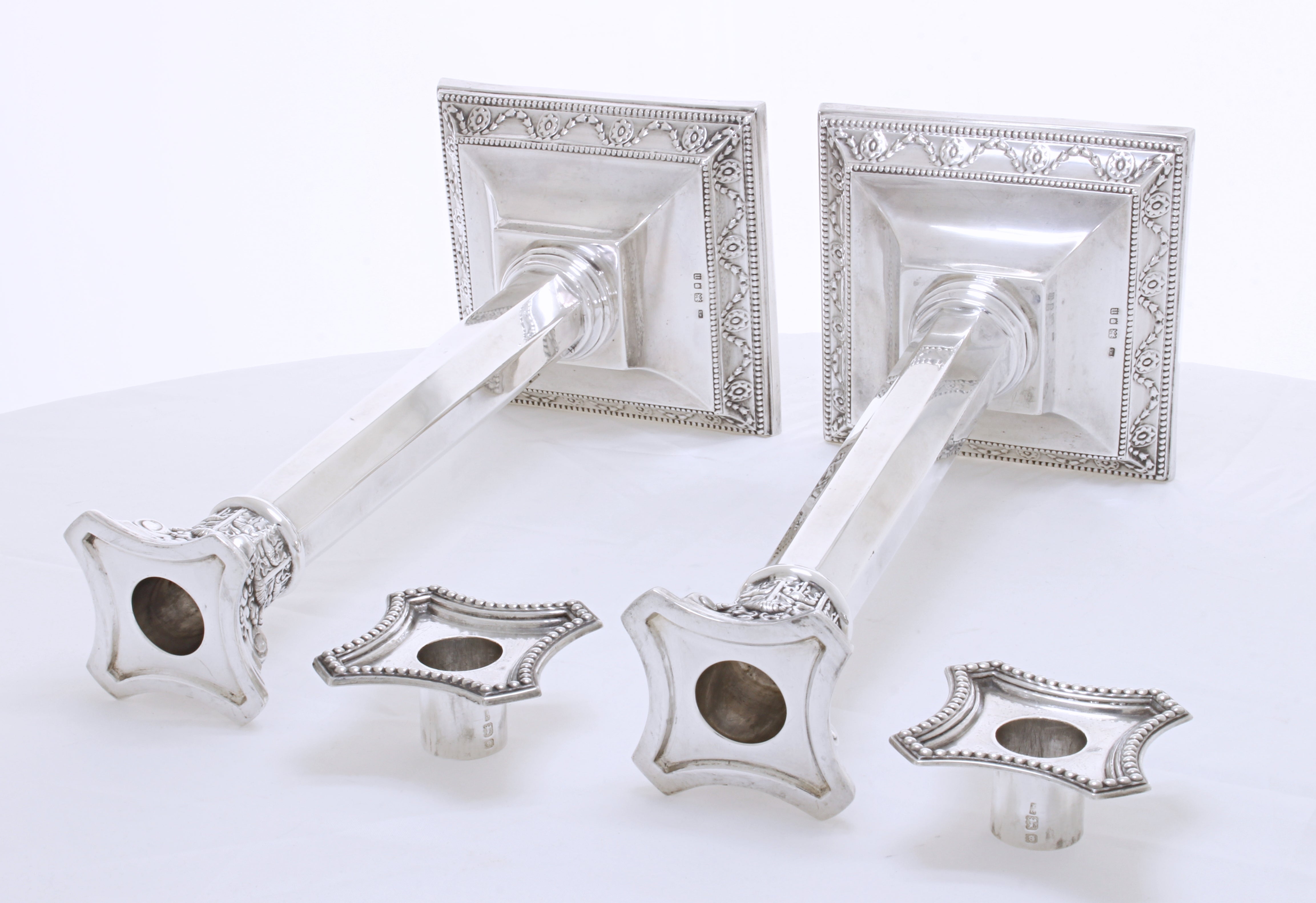 Let op: deze kandelaars zijn niet verzwaard; het volledige gewicht bestaat uit sterling zilver.