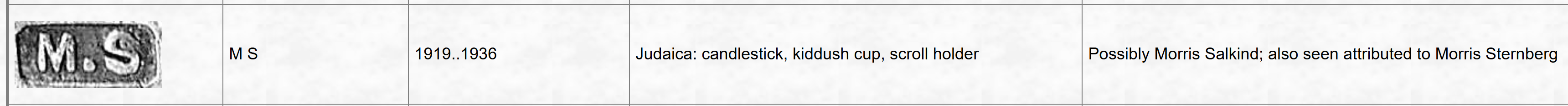 Vervaardigd door M S (mogelijk Morris Salkind)